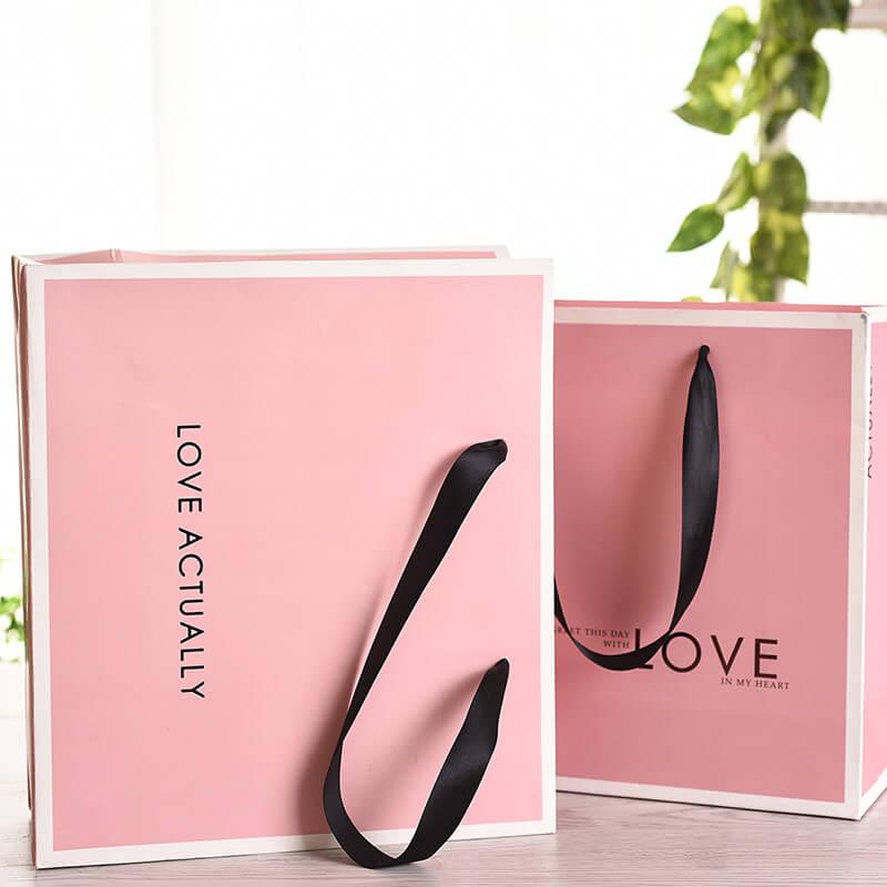 Logo Printed Luxury Shopping Paper Bag With RibbonIf you are interested in our products and want to know more details,please leave a message here,we will reply you as soon as we can.